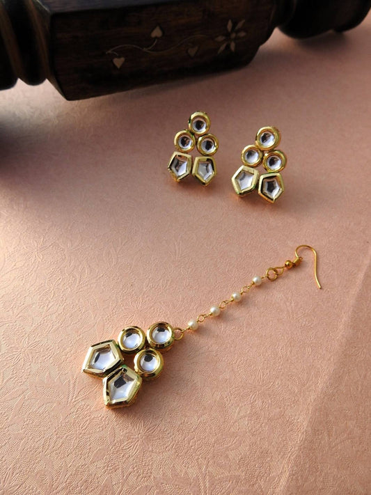 Ziyana Layered Kundan Necklace Set with Pearl Drops