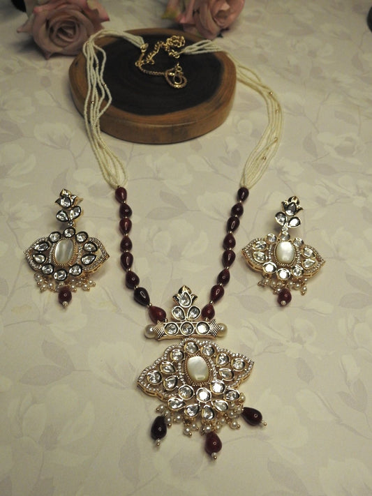 Ruhaniya Ruby Beaded Necklace Set