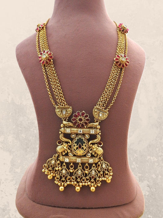 Aavya Layered Kundan Necklace Set with Pearl Drops