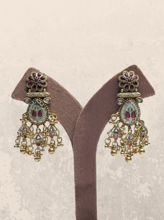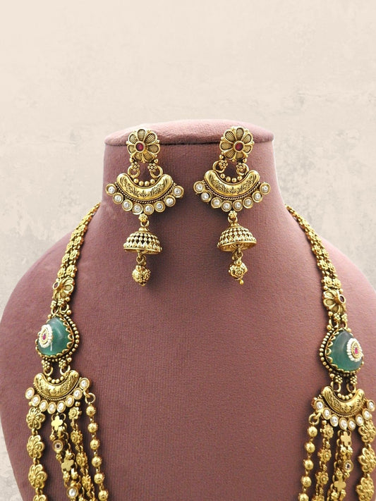 Ziyana Layered Kundan Necklace Set with Pearl Drops