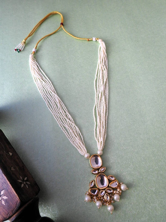 Ziyana Layered Kundan Necklace Set with Pearl Drops