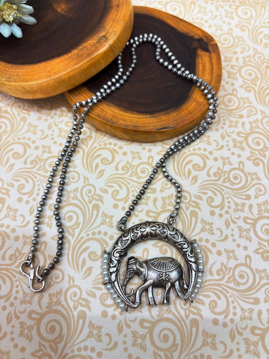 Regal Elephant Oxidised Silver Pendant and Earring Set