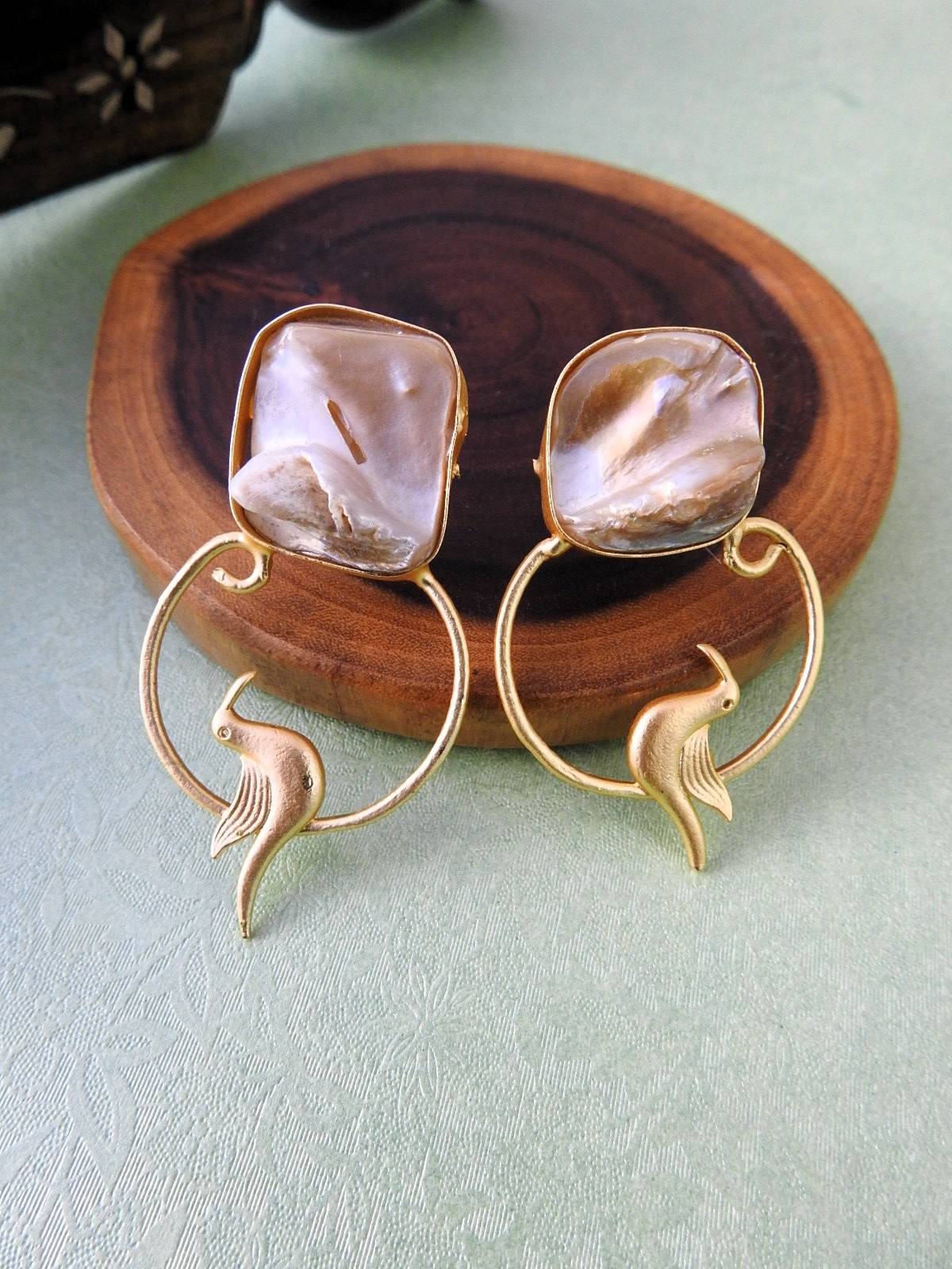 Embrace effortless elegance with these stunning statement earrings, featuring a radiant Mother of Pearl stone paired with a delicate bird motif. The design blends organic beauty with a touch of whimsy, making it the perfect accessory for both special occasions and everyday glamour. The soft iridescence of the mother of pearl complements the sleek golden hoop, creating a luxurious yet lightweight piece that adds grace to any outfit.