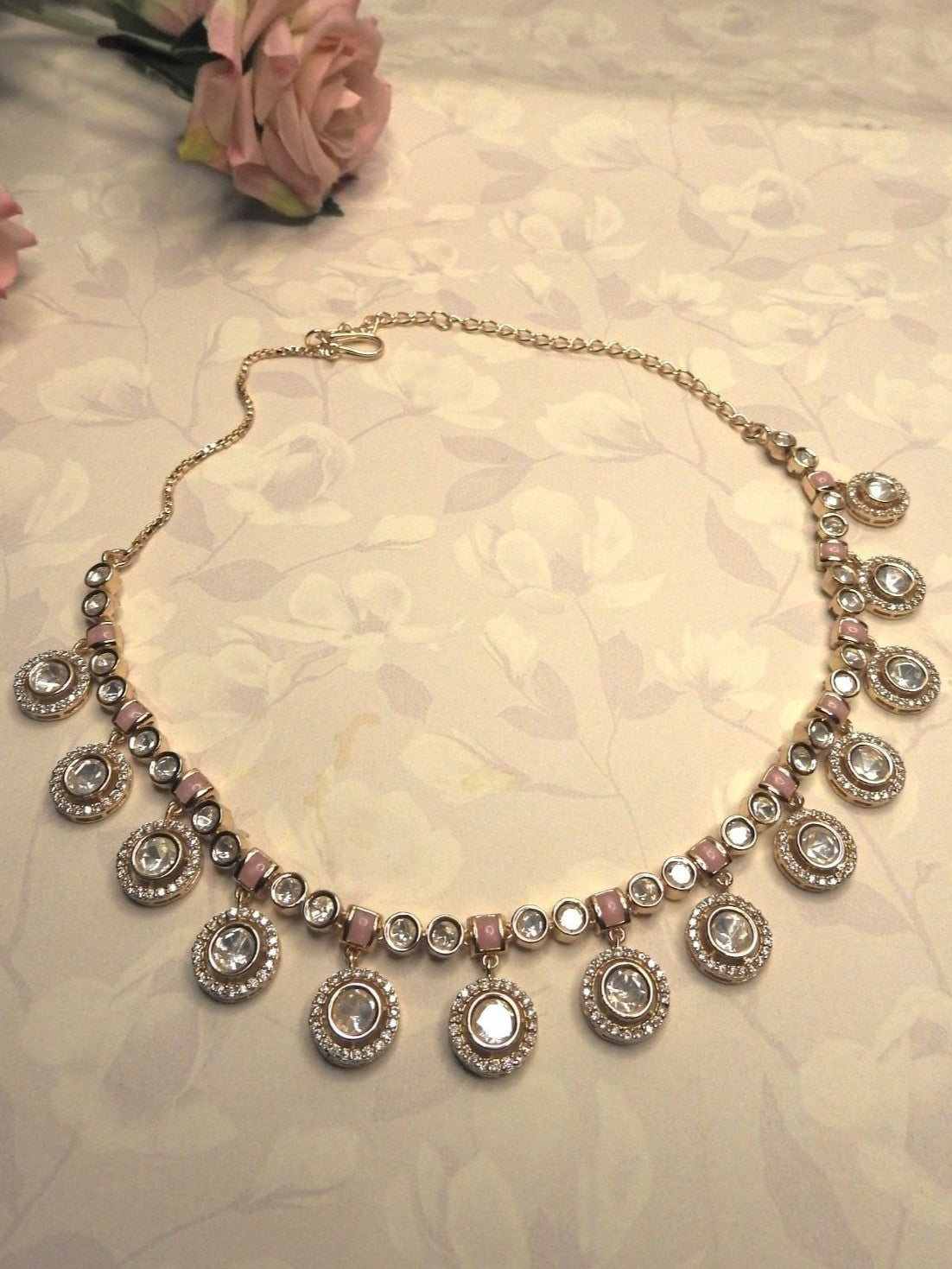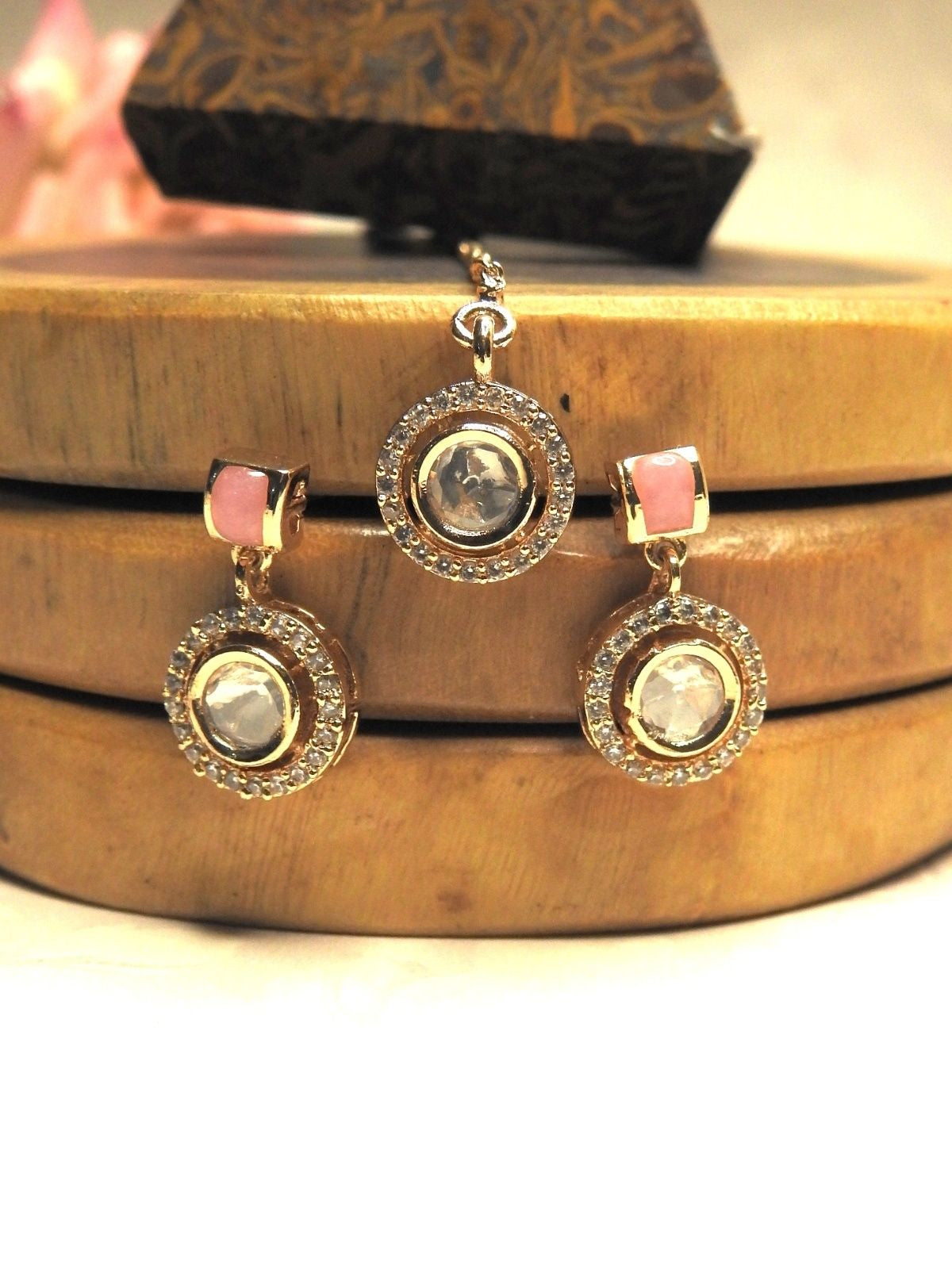Adorned with mirror-cut stones that catch the light from every angle, it adds a subtle glow to festive outfits, wedding guest looks and evening celebrations. Lightweight and timeless, this set is designed to elevate your style with effortless sophistication.