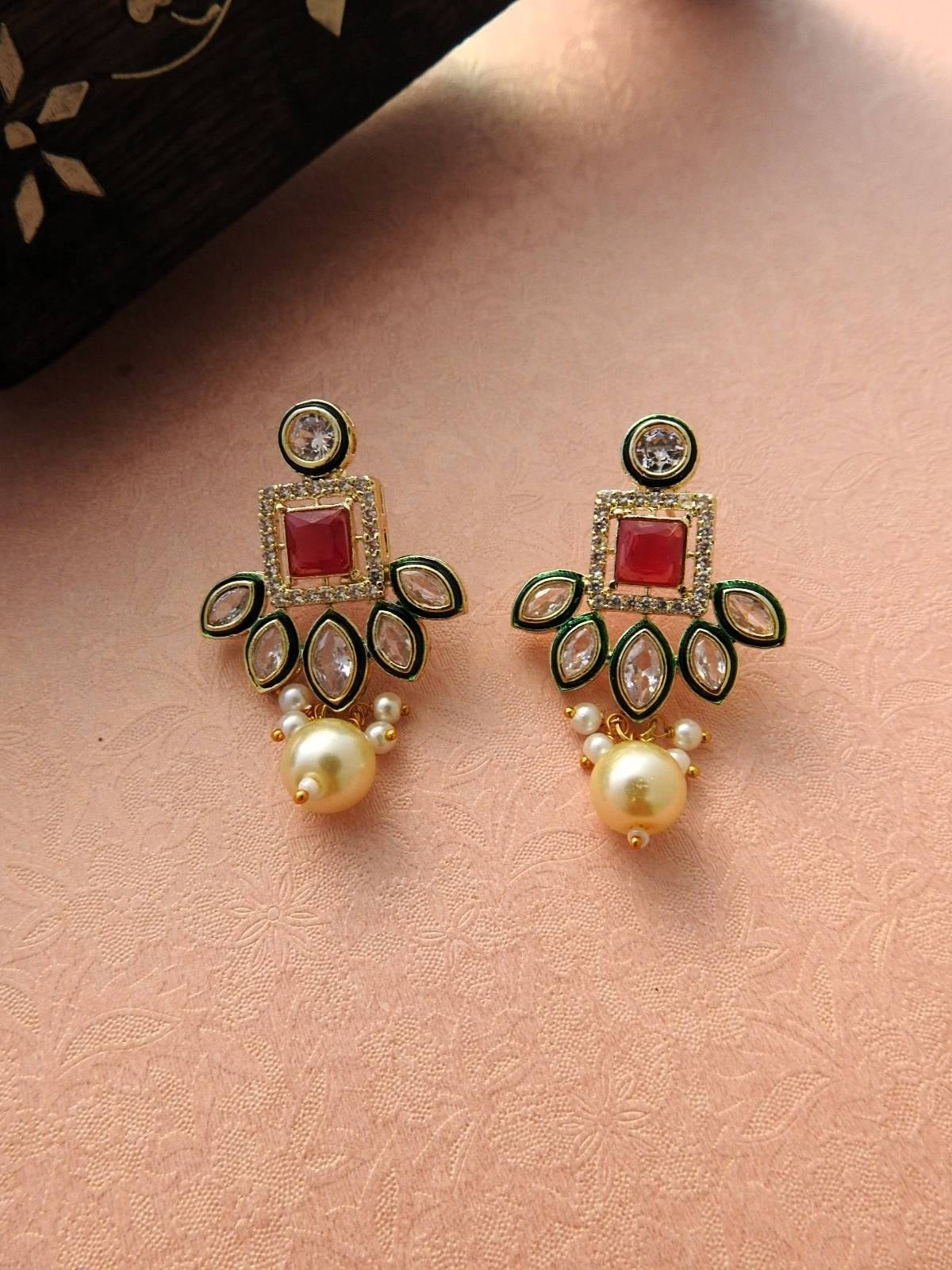 The matching earrings mirror the pendant’s refined detailing, making this set a true celebration of heritage artistry and contemporary charm. Whether worn for weddings, festive occasions, or grand celebrations, this jewellery set enhances every look with royal brilliance.