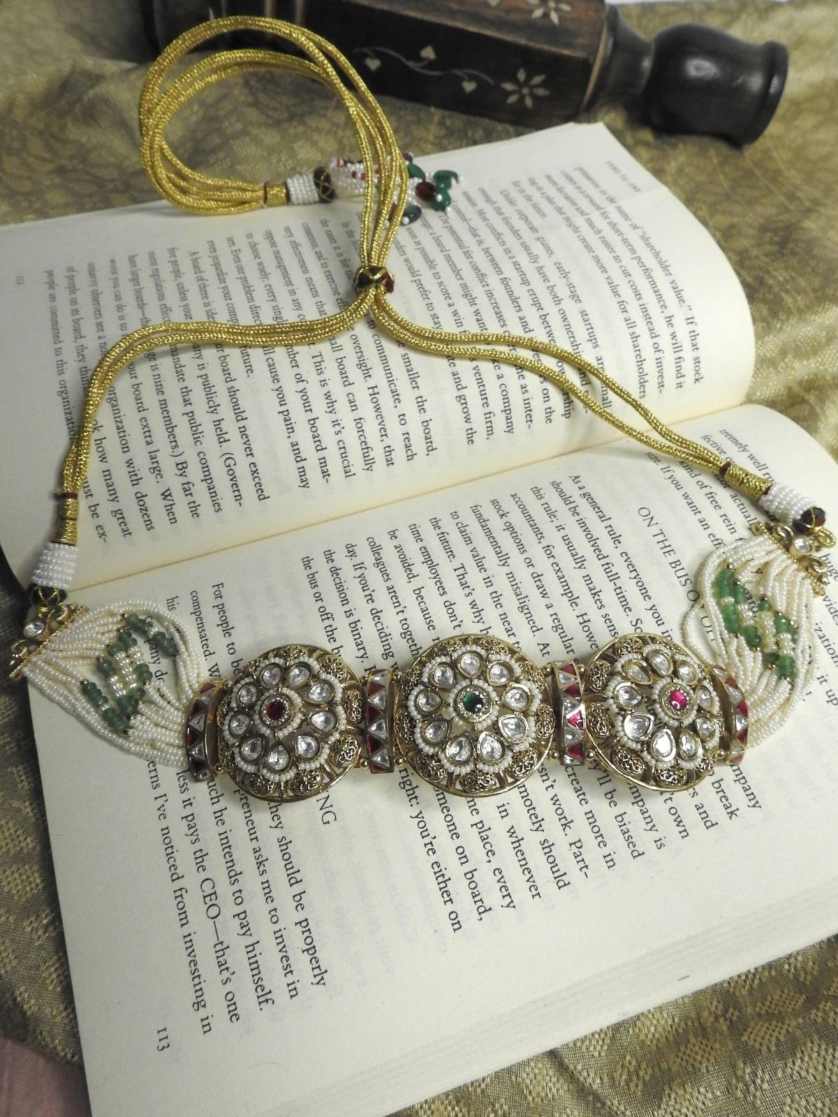 Lightweight, refined, and versatile, this pearl choker set pairs beautifully with sarees, gowns and fusion festive outfits. Matching earrings complete the graceful silhouette, perfect for weddings, festive events and parties.