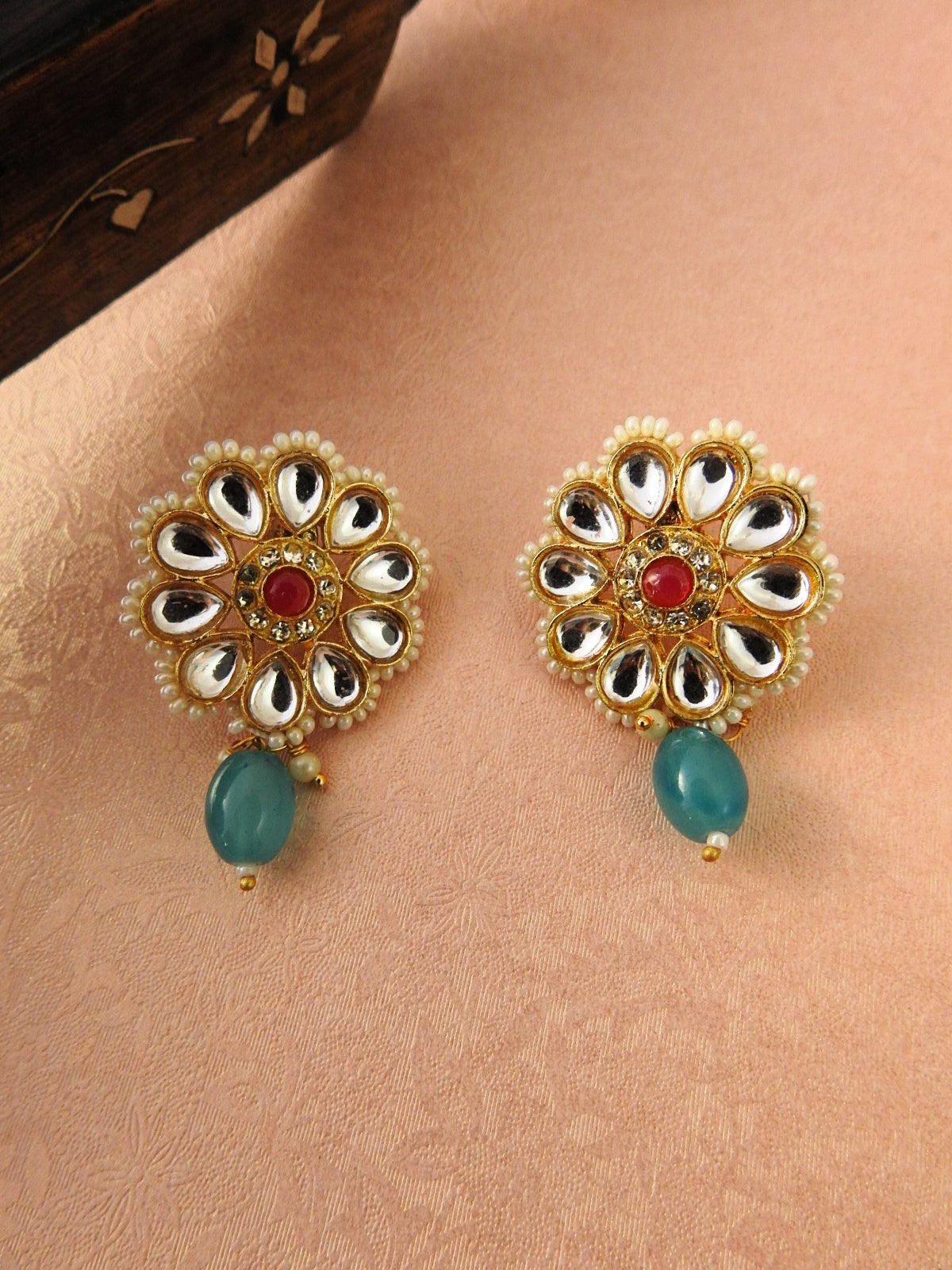 Multi-Layer Beaded Polki Necklace Set with Floral Centerpiece
