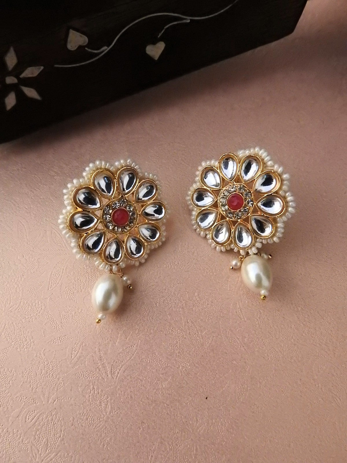 Make every occasion special with this elegant multi-layer necklace set. Designed with delicate beads and a stunning floral Polki centerpiece, it blends traditional charm with modern style. The set includes matching earrings, making it perfect for weddings, parties or festive celebrations.