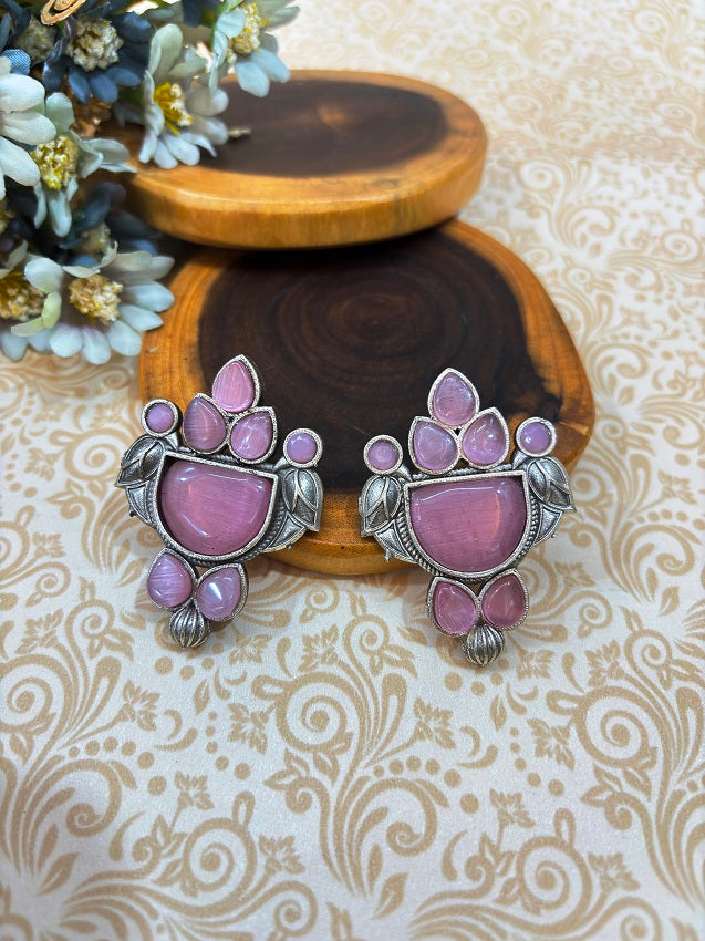 Discover the unique charm of this elegant jewellery set, featuring a captivating blend of materials and textures. The design showcases three polished, translucent stones in an intricate floral-inspired setting. These stones are accented by smaller, contrasting elements, creating a visually appealing centerpiece.