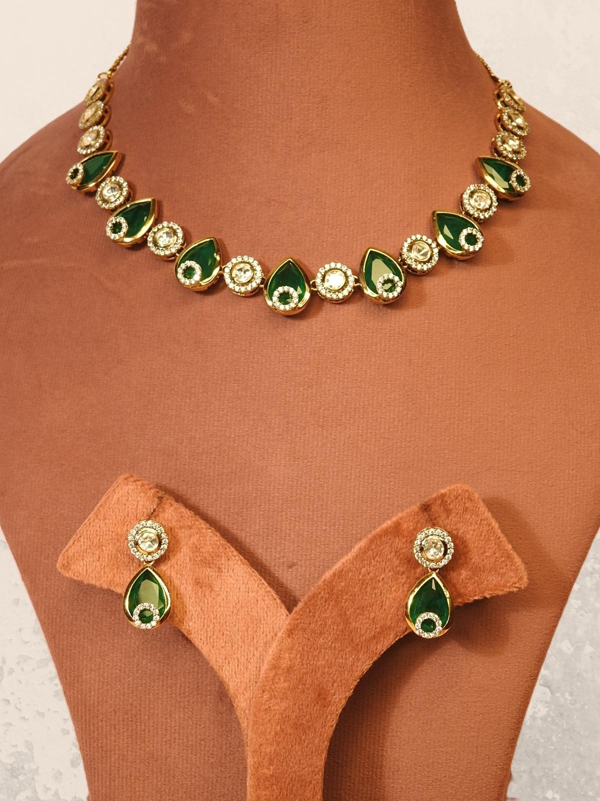 Shine with timeless sophistication in the Radiant Grace Moissanite Necklace Set. Crafted with brilliant moissanite stones set in a sleek gold finish, this elegant set captures the perfect blend of modern luxury and classic grace. Its refined design makes it an ideal choice for festive occasions, weddings or evening celebrations.