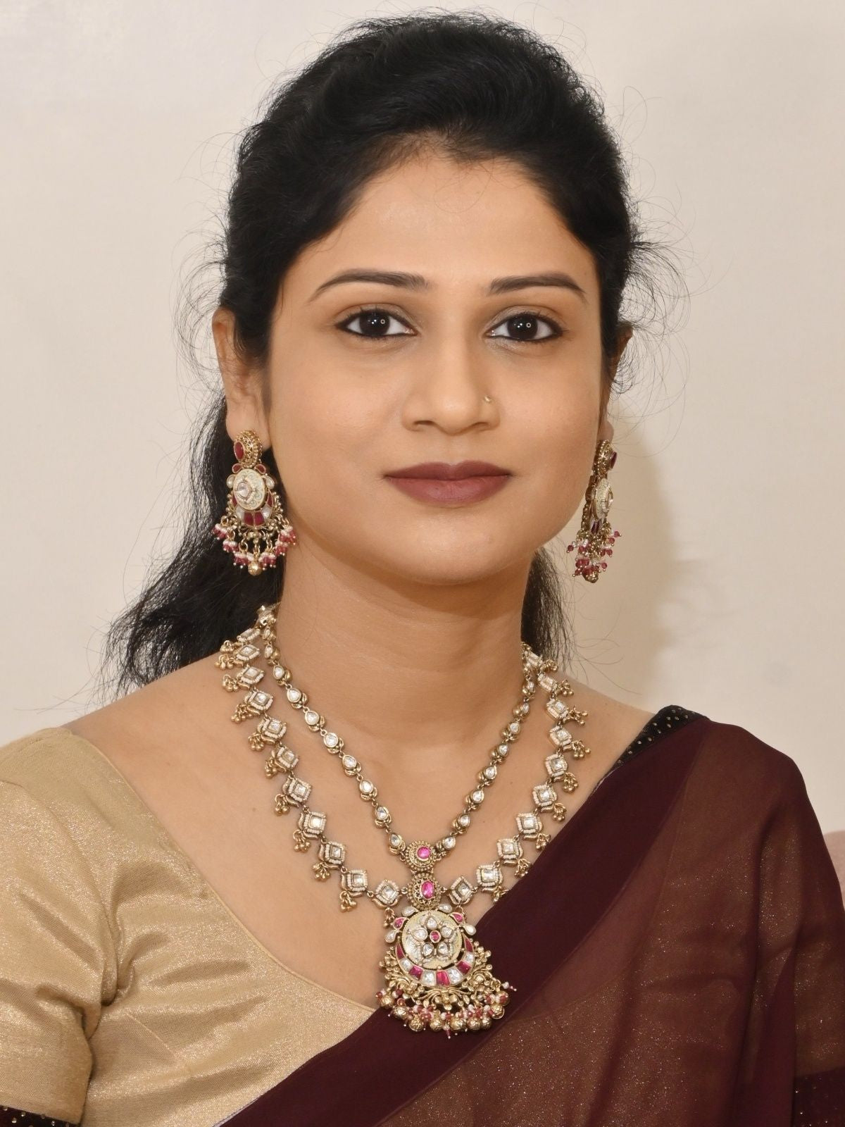 The statement pendant and coordinated earrings bring movement, shine and effortless grandeur, perfect for weddings, festive functions, parties and special celebrations. Lightweight and versatile, pair it with sarees, lehengas, shararas or Indo-fusion outfits for an elegant statement.