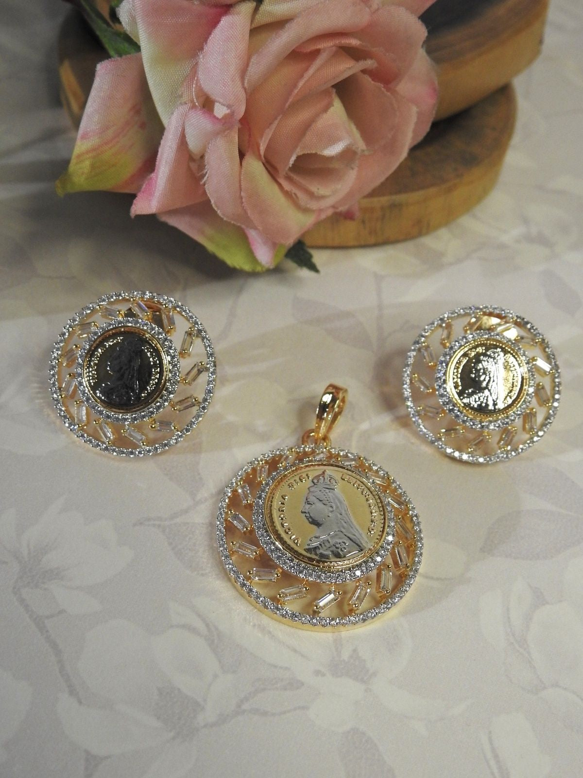 Step into timeless elegance with this Regal Coin Pendant Set.